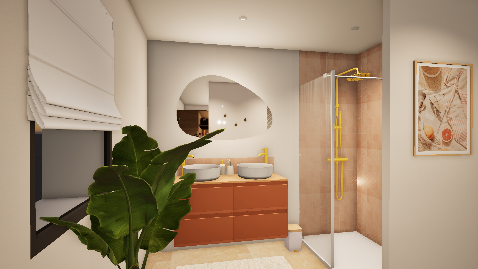 Dans ce projet, les jeunes propriétaires m’ont laissé carte blanche pour agencer et décorer les espaces ! L’idée était de créer de la vie dans cette maison qui sort tout juste de terre. Eviter les ambiances froides et trop minimalistes pour laisser la part belle à de jolies teintes pastels.